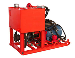 全液压钻机泵站是钻机的动力源,由防爆电动机、主油泵、副油泵、油箱、冷却器、滤油器、底座等部件组成。电动机通过弹性联轴器带动油泵工作,从油箱吸油并排出高压油,经操纵台驱动钻 机的各执行机构工作。